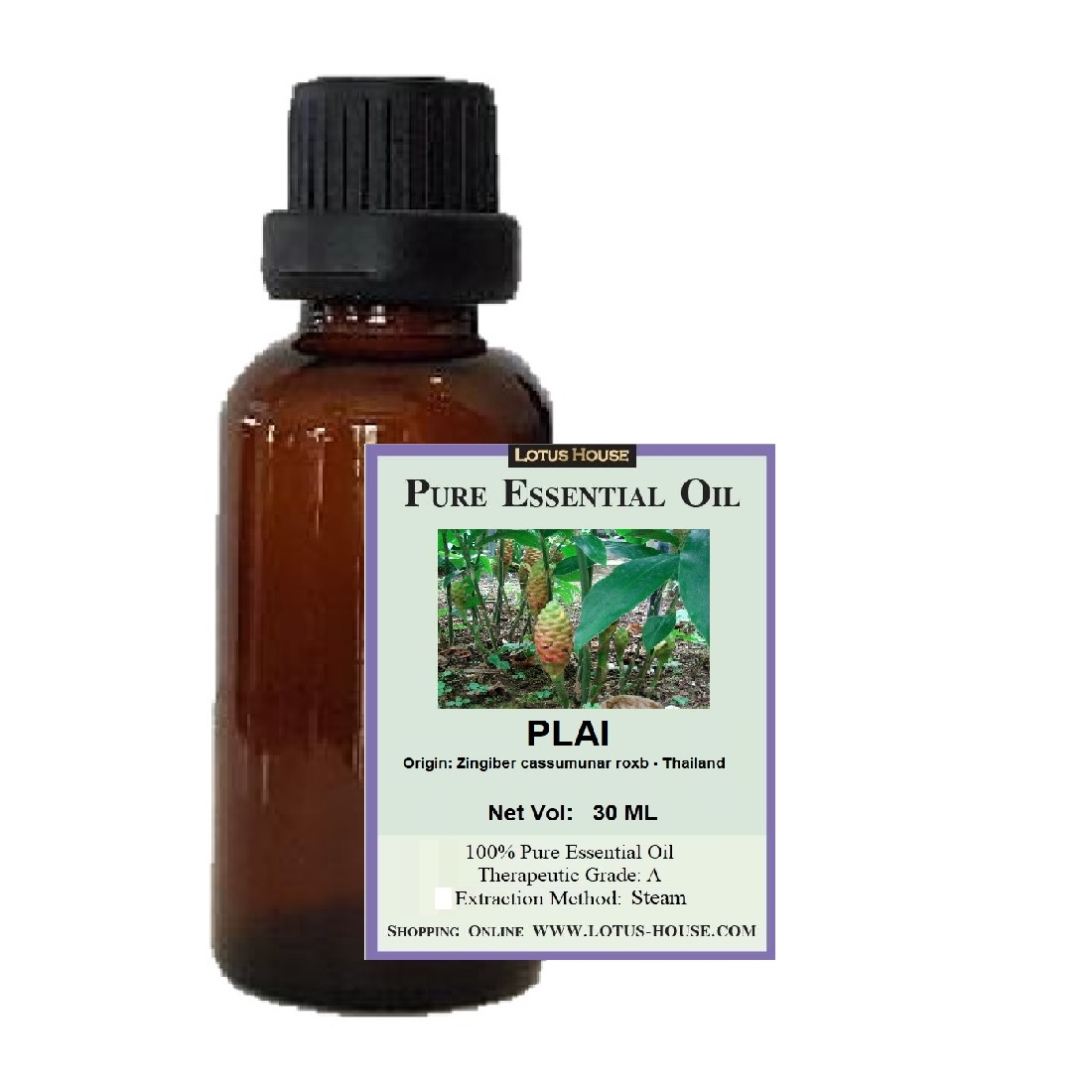 Plai essential oil is excellent pain reliever on joints and muscles. The undiluted Plai has been found to ease pain for upwards of 16-20 hours. The scent is cool, green and peppery. It has an antiseptic, antitoxic, anti-viral, digestive and strong anti-inflammatory as it is from the family of ginger but it gives cooling effect instead of warming effect on the inflamed area. Plai essential oil is widely used in aromatherapy and spa products, it blended well with blackpepper, rosemary or orange for healing inflammatory or digestive problems. Can be used as an insect-repellent.
